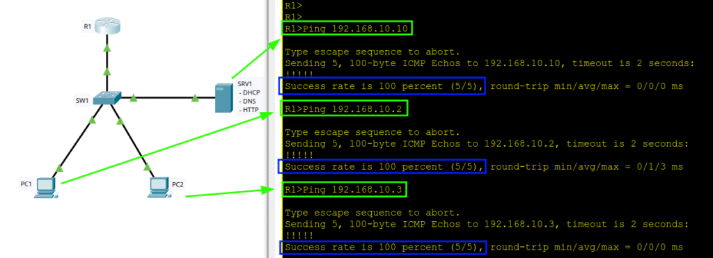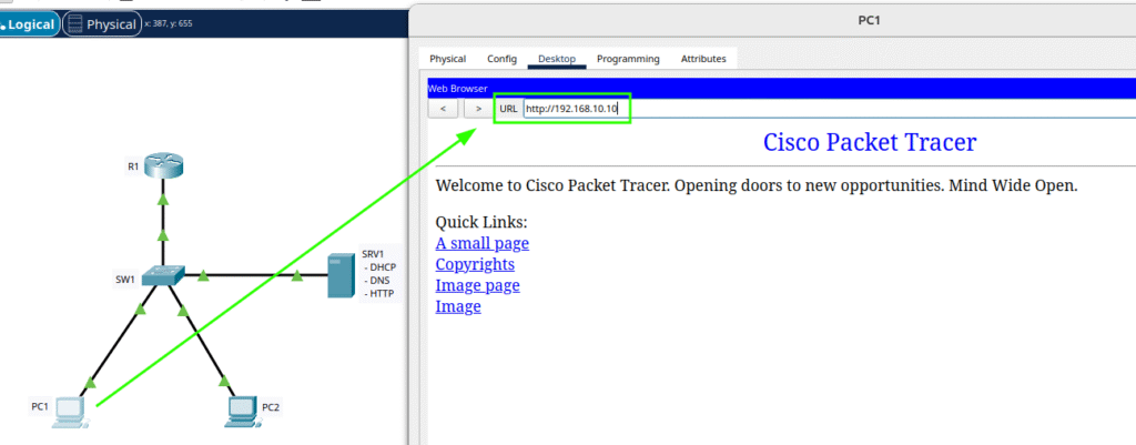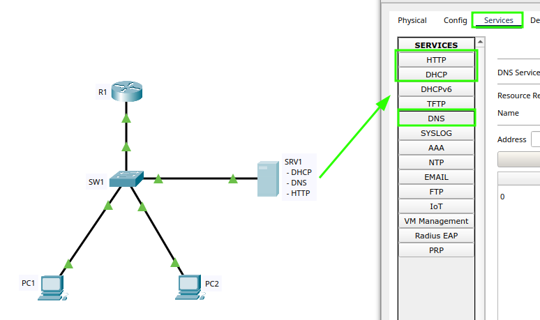 | SRV1 | NIC | 192.168.10.10 /24 | DNS + DHCP + HTTP server |