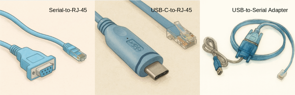 - On newer Cisco gear, you might see USB mini-B or even USB-C console ports. In that case, grab the matching cable:
