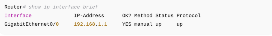 View interface IPs and masksshow ip interface briefShows assigned IPs in decimal but device stores them in binary