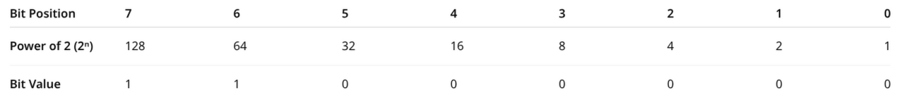 Tip: Remember the bit weights: 128, 64, 32, 16, 8, 4, 2, 1