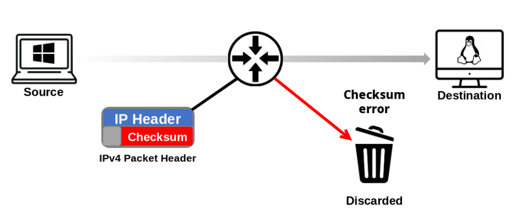 - For example, if a single bit flips due to noise on the line, the checksum won’t match, and the packet will be discarded.