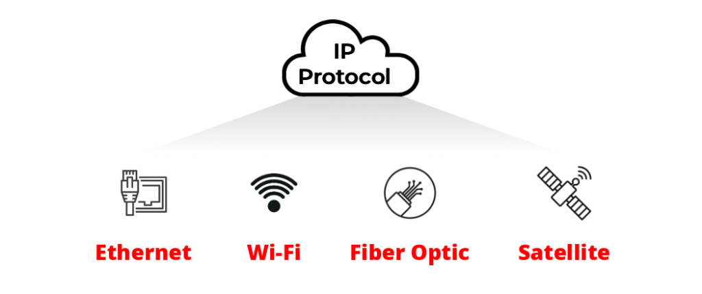 - Independence from Media: IP doesn’t care if it runs over fiber, Wi-Fi, 5G, or satellite. It only requires an underlying transport that can carry its packets.