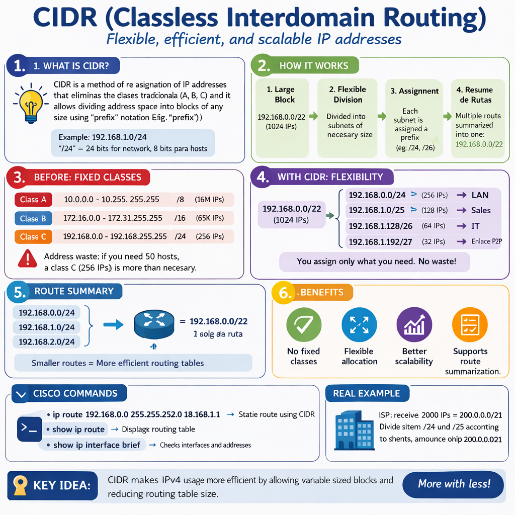 - CIDR removes fixed class boundaries and allows flexible allocation of address blocks.