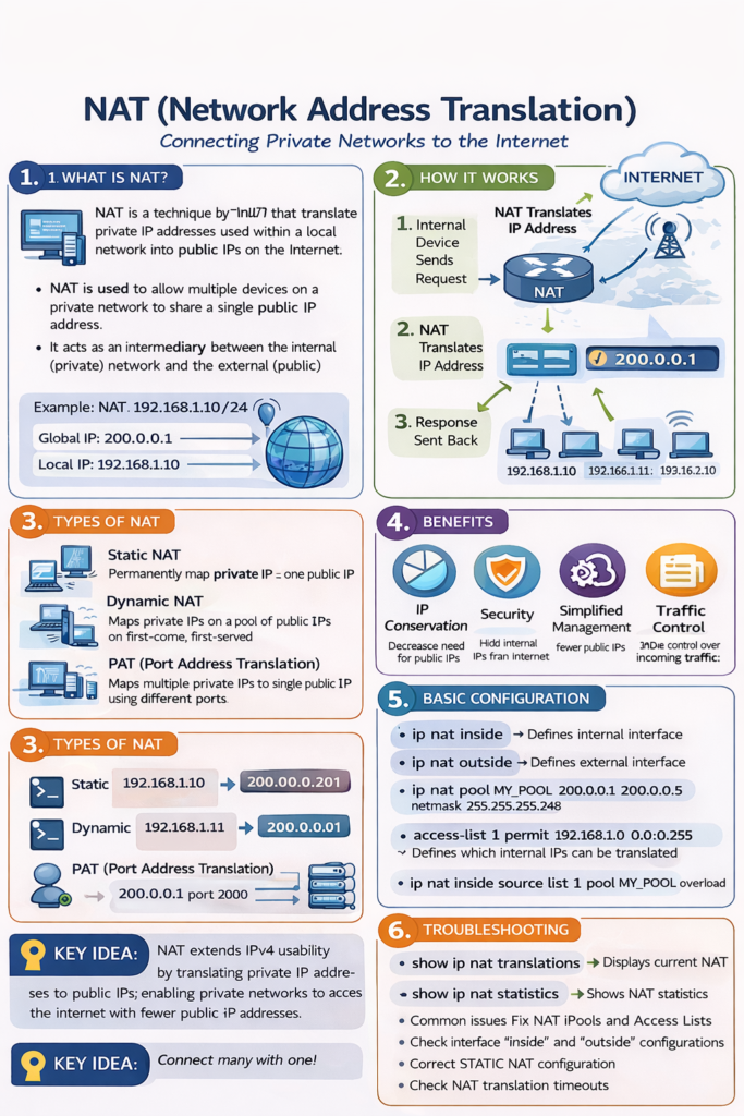 - Commands: ip nat, show ip nat translations