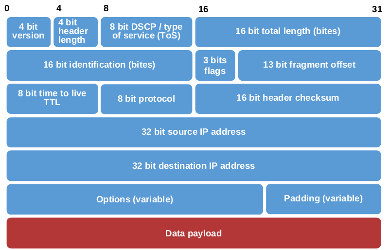 • A payload (the actual data, such as a TCP segment or a UDP datagram)