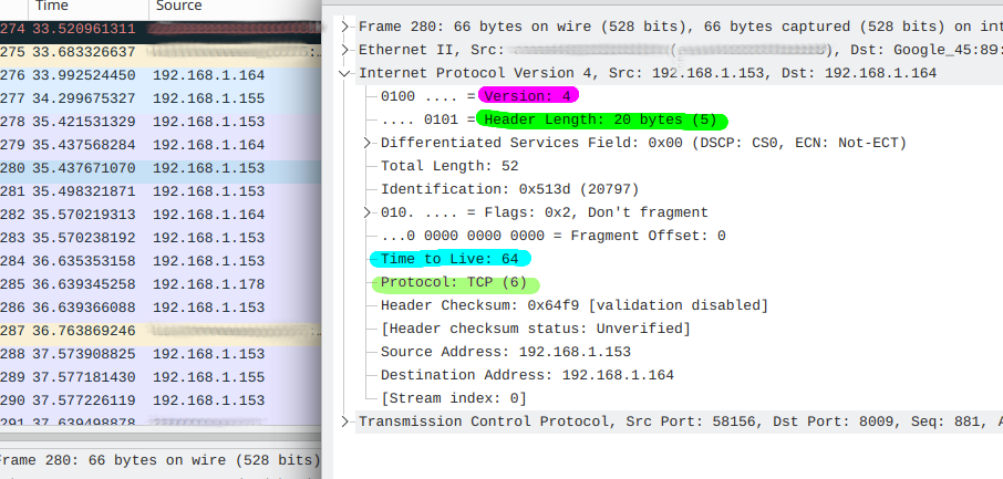 Protocol8Specifies upper-layer protocol (TCP, UDP, ICMP, etc.)
