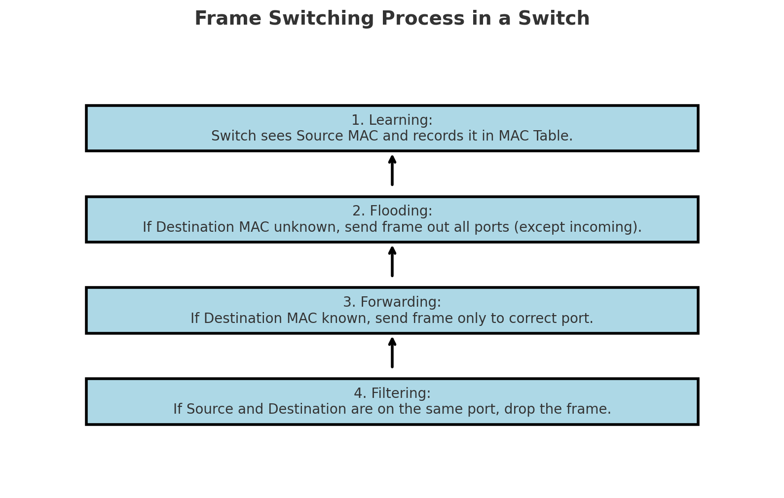 This process is called Learning, Flooding, and Forwarding, and it’s the secret sauce that makes switches smarter than old hubs.