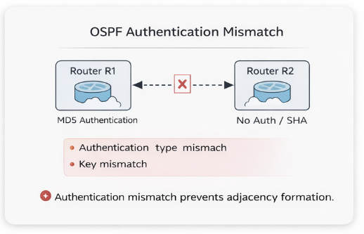 In real-world operations, authentication misconfigurations are a common root cause of OSPF adjacency failures, understanding both the theory and implementation is essential for any network engineer.
